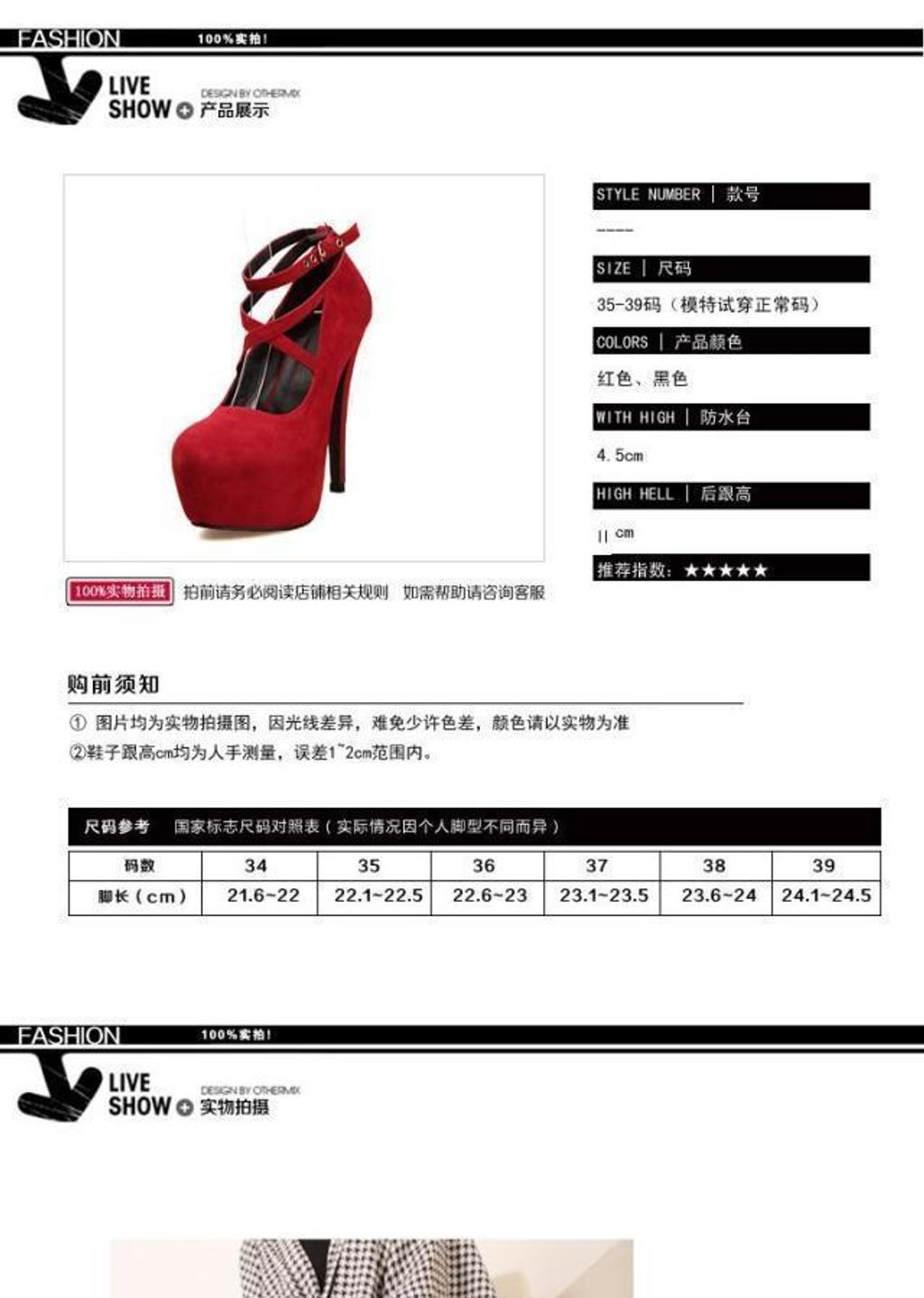 - Followed by high: high heel (greater than 8cm)