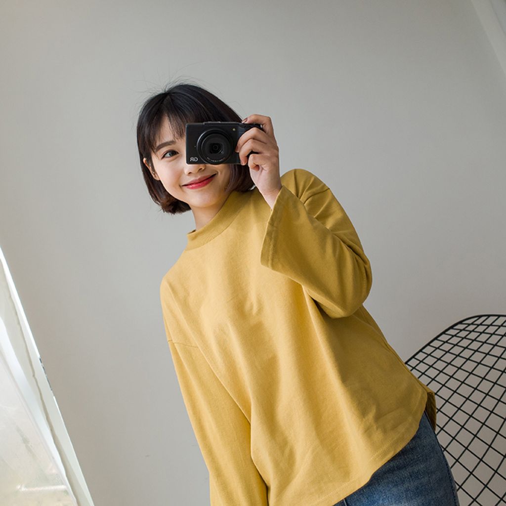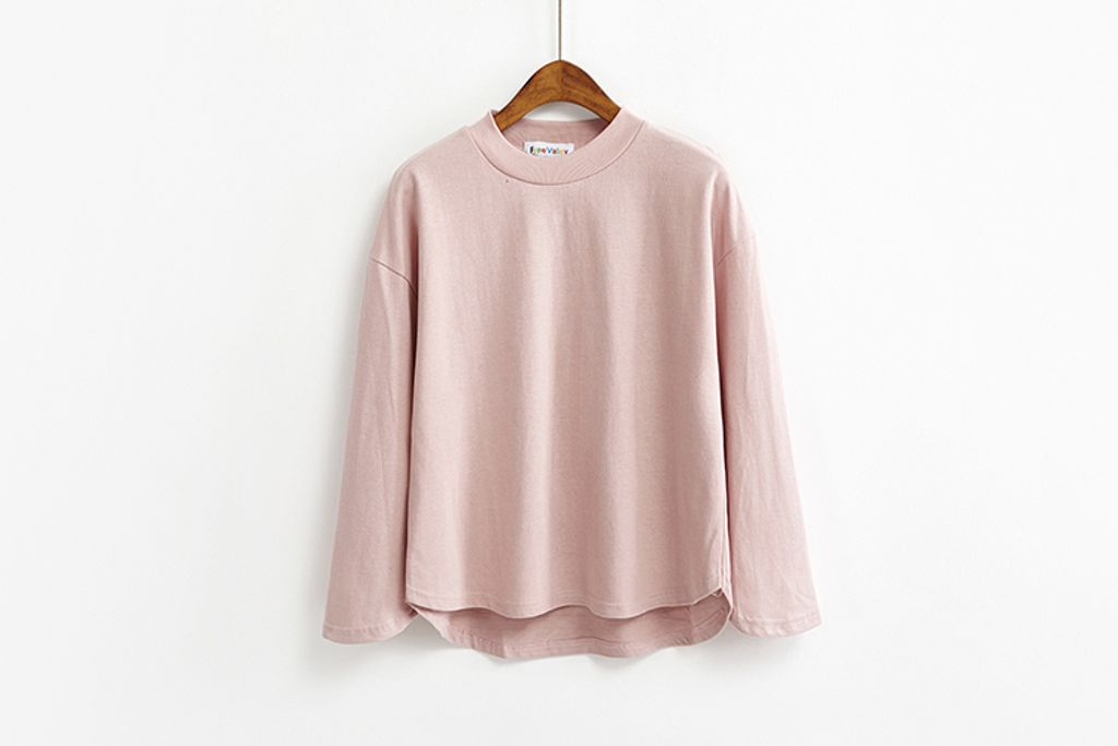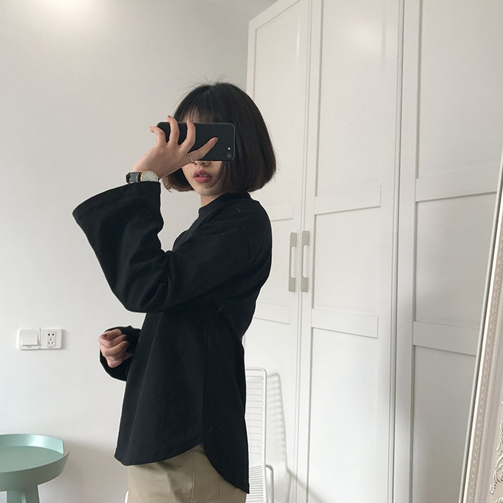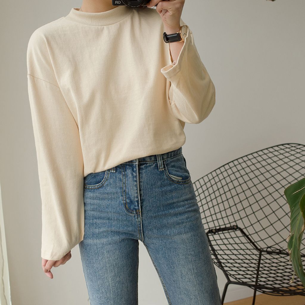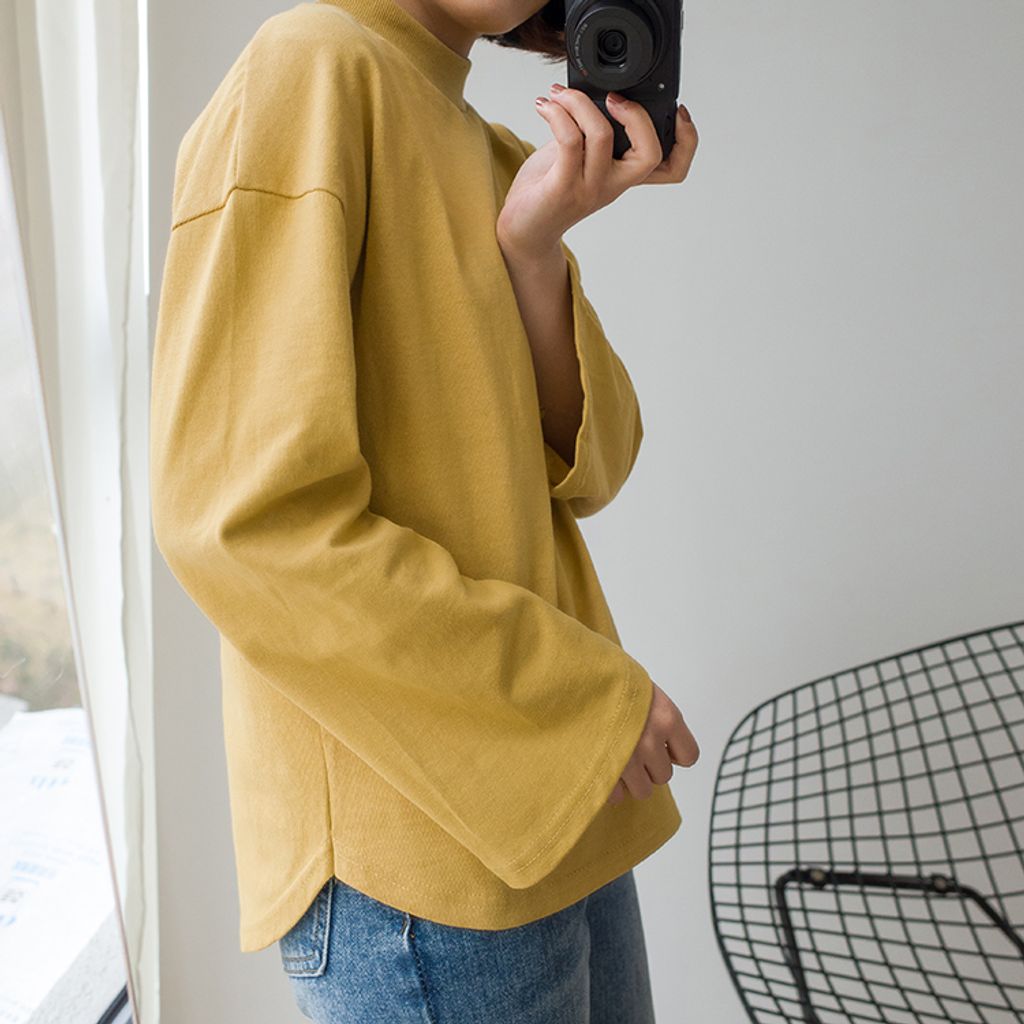 2017 spring new women's pure color small high-collar generous loose thin students long sleeve backing T-shirt shirt women