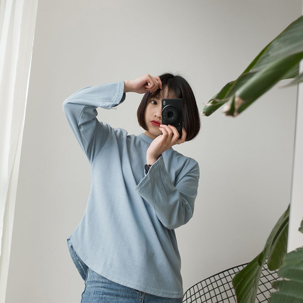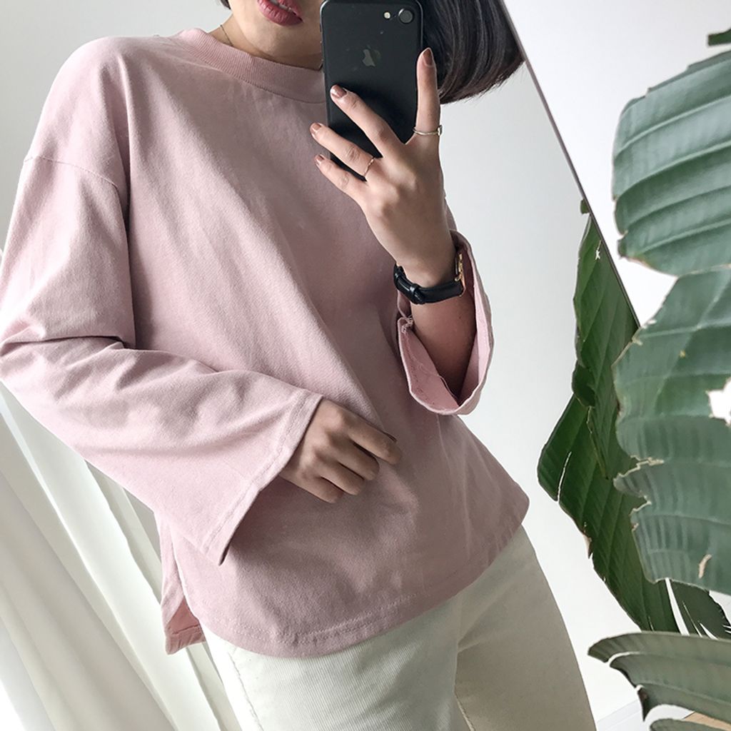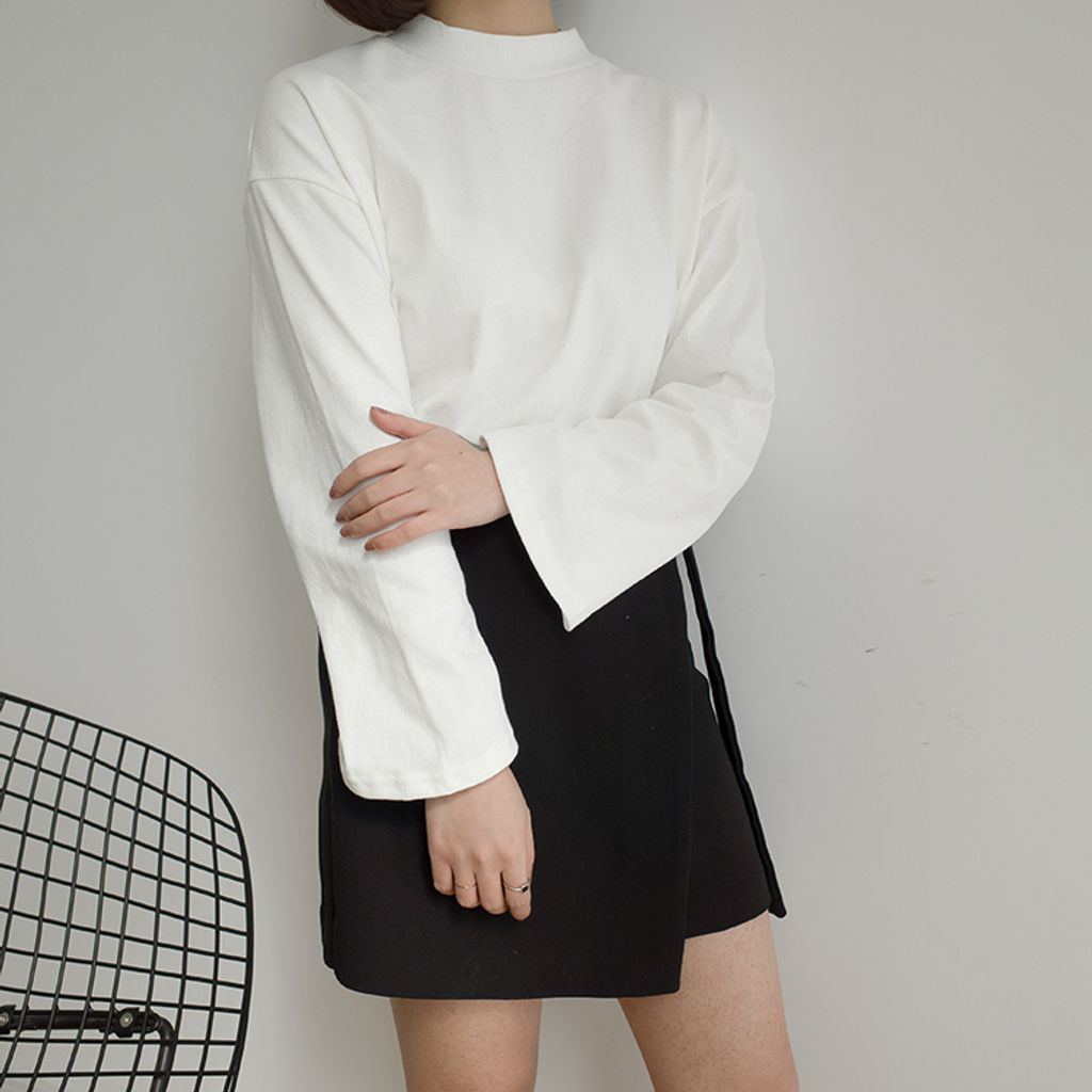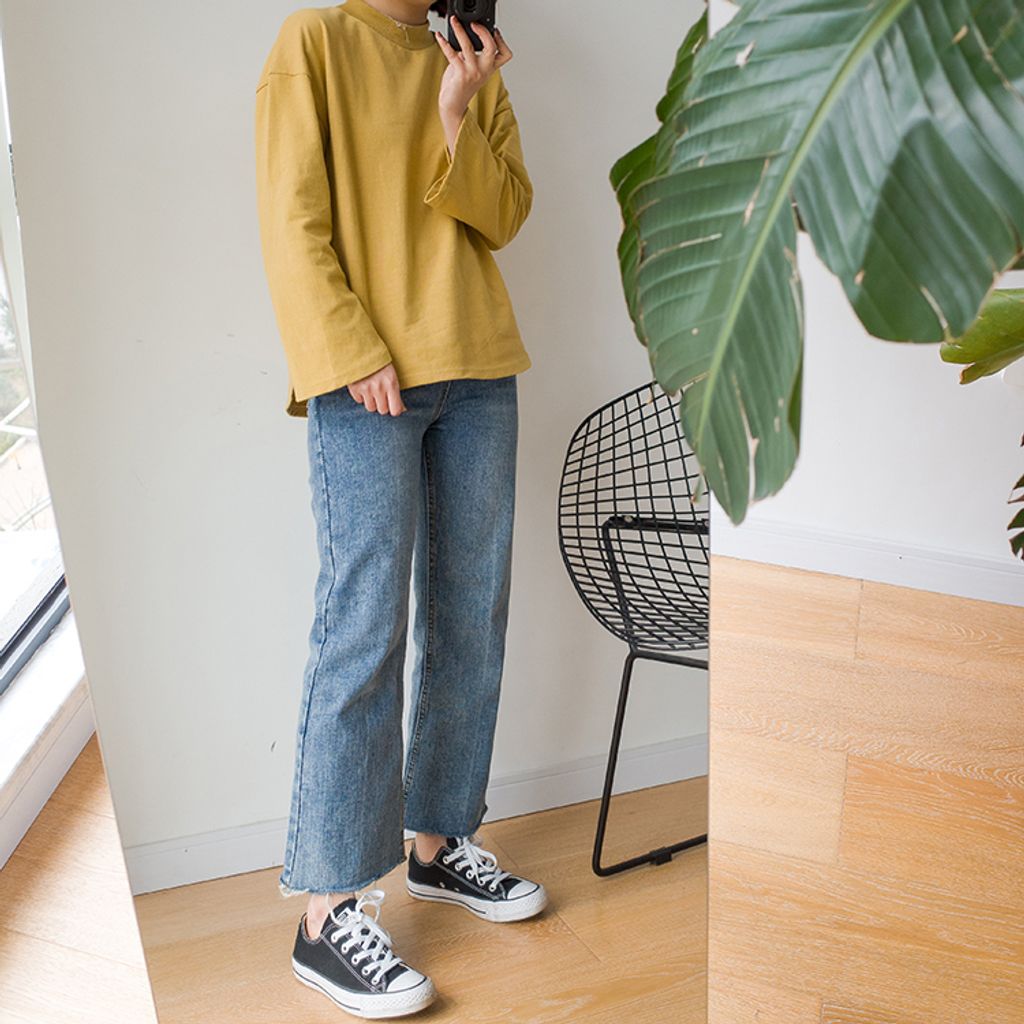 2017 spring new women's pure color small high-collar generous loose thin students long sleeve backing T-shirt shirt women