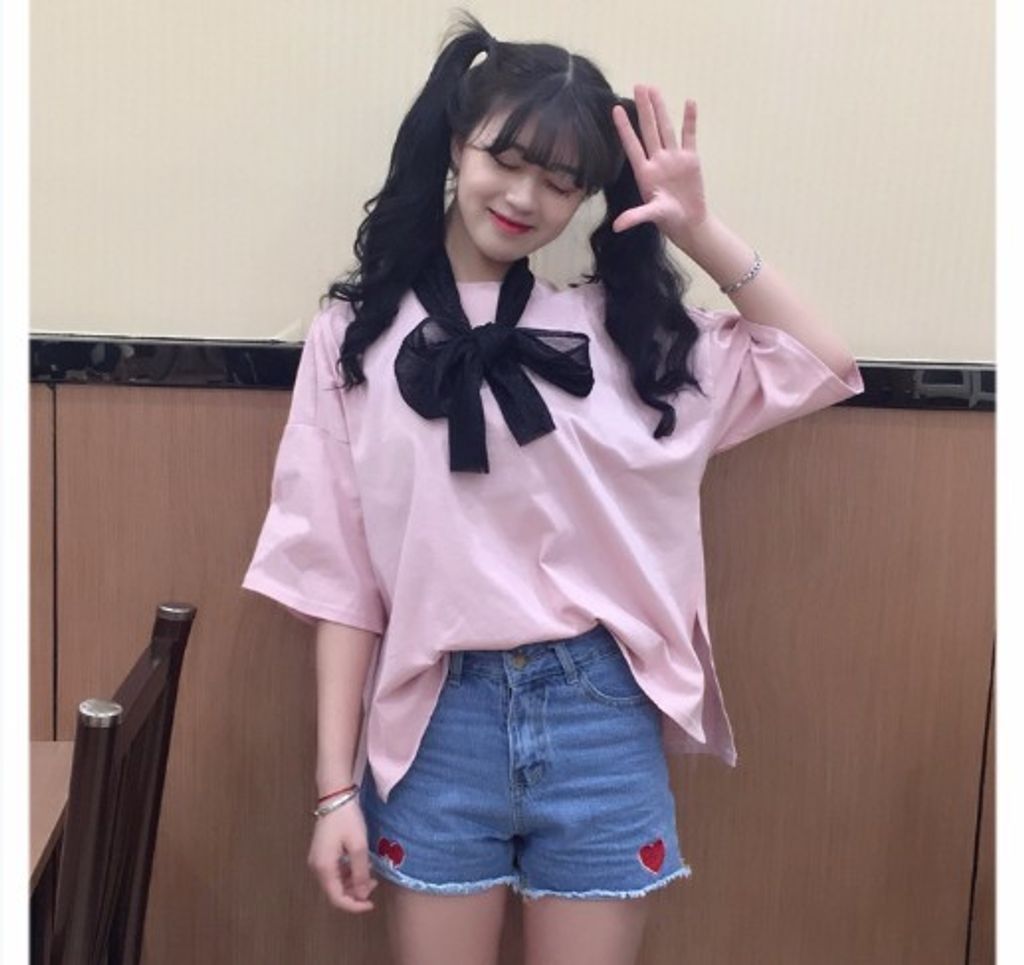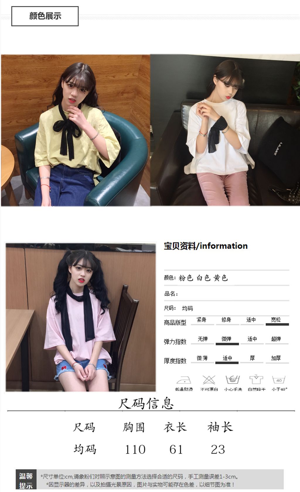Spring and summer new women's soft sister bow tie with a wide range of loose thin short sleeve students under the T-shirt shirt